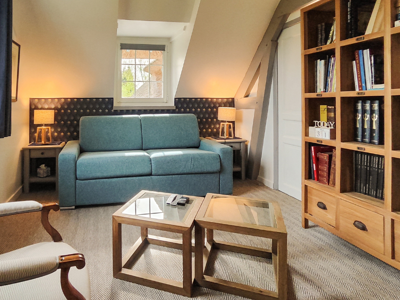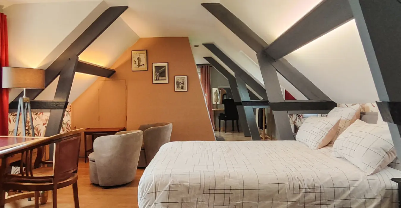 Spacious guest room (45 m2), with private shower room and work area to suit your needs. A 13m2 lounge is at your disposal