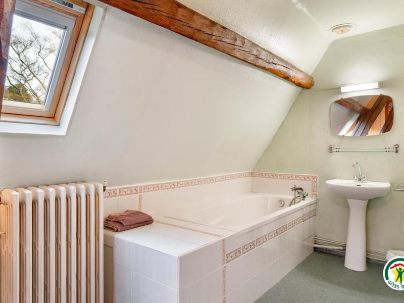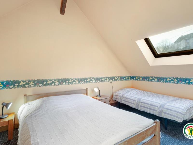 Upstairs in the main house: 1 double bedroom with private bathroom and toilet. In the restored barn, on the ground floor: 1 twin bedroom. Upstairs: 1 double bedroom and 1 bedroom with a double bed and a single bed, private shower room and toilet. Living room with kitchen area and sitting room. Baby bed and equipment.