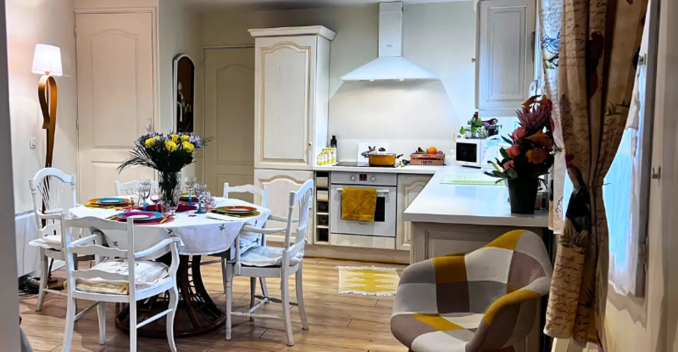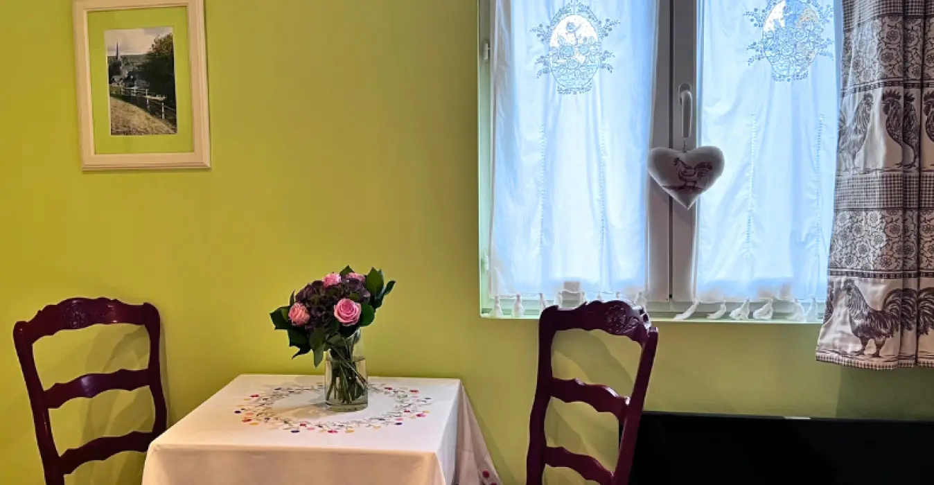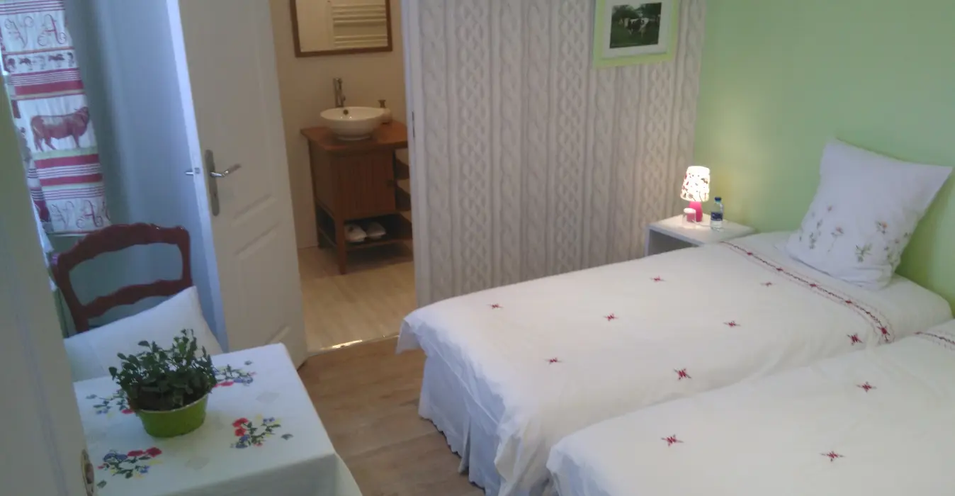 In the heart of Madame Bovary's village, Muriel Vinet welcomes you to her B&B located next to her charming embroidery shop "Tante Yvonne" with tastefully decorated bedrooms: a room for 2 or 3 people on the ground floor (individual entrance), a room on the first floor for 2 and a room on the second floor for two accessed via alternating tread stairs.