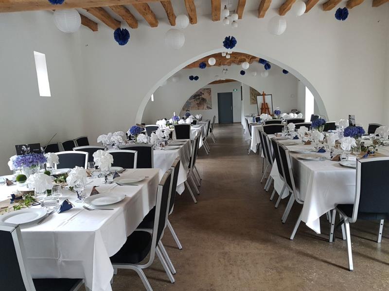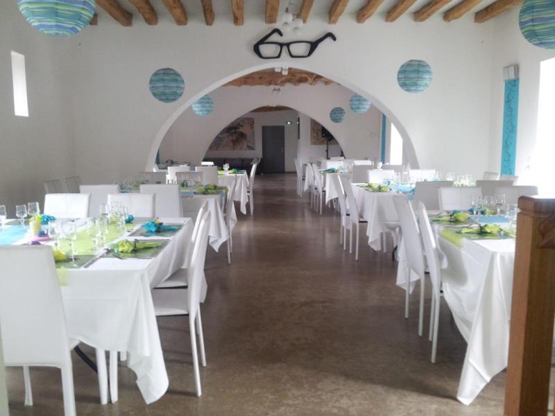 Garden furniture. 135 m² reception hall with lounge area and TV, semi-professional well-equipped kitchen (dishwasher, kitchen range with oven, washing machine, dryer, microwave, complete set of tableware), 1 double bedroom accessible for people with reduced mobility with shower room and toilet. Upstairs: 9 mezzanine bedrooms: 1 bedroom with 6 single beds, 1 bedroom with 2 double beds, 1 bedroom with 1 double bed, 2 single beds and 1 extra bed (130 cm), 2 bedrooms with 1 double bed and 1 single bed, 4 bedrooms with 1 double bed and 2 single beds, 6 shower rooms with toilet. Table tennis. 3 barbecues. Household linen included (sheets, towels, tablecloth.) Electric heating. Housecleaning service: 150€. Wi-Fi access.