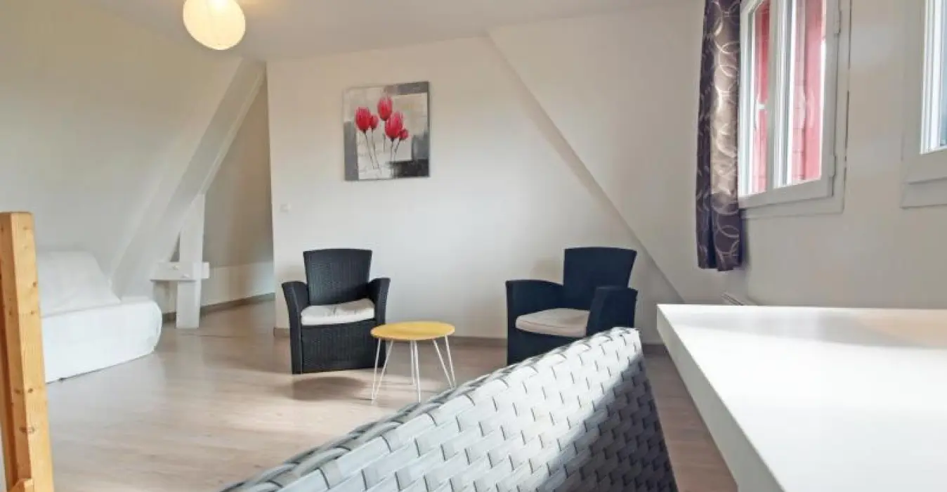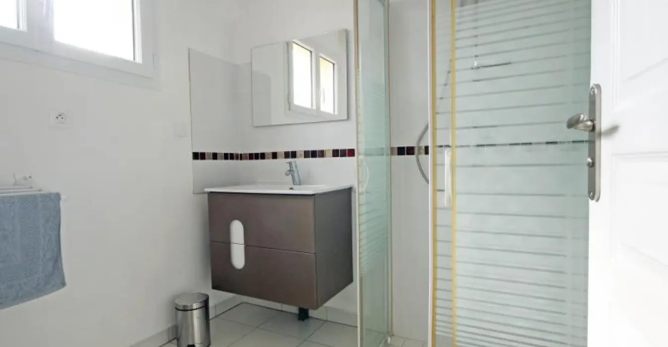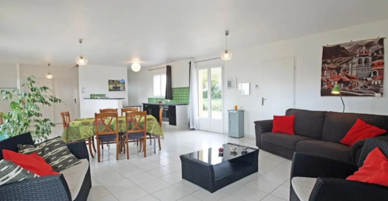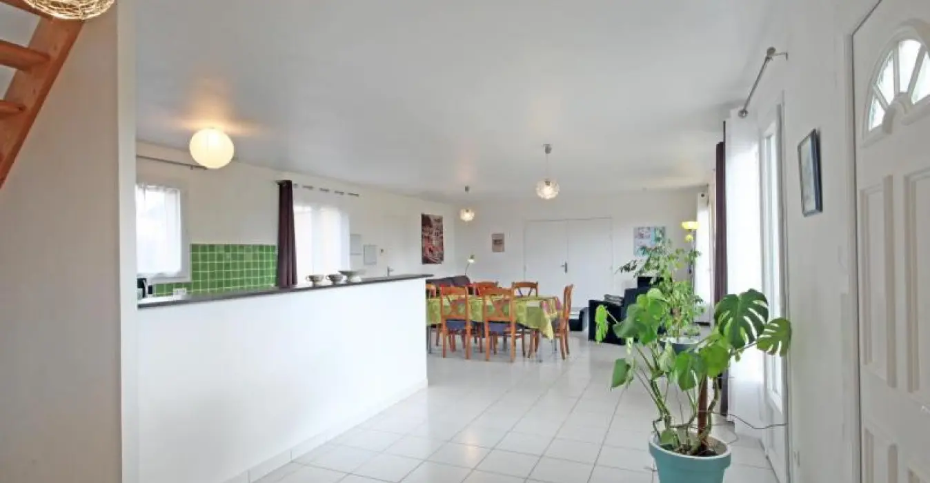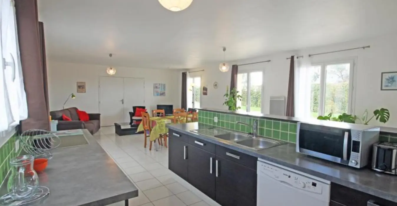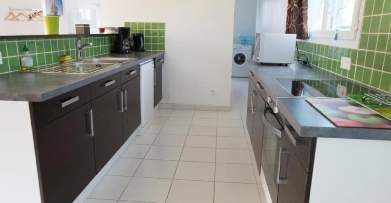 Ground floor: open kitchen (dishwasher, microwave, ceramic hobs), dining room/sitting room (flat screen TV), laundry area (washing machine), shower room and separate toilet. Upstairs: sofa bed (for 2) on the landing, 2 bedrooms with a double bed (140 cm), shower room, separate toilet. Heating: 8€/day from 1 October to 31 March . bed linen rental. Optional housecleaning service. Tourist tax.