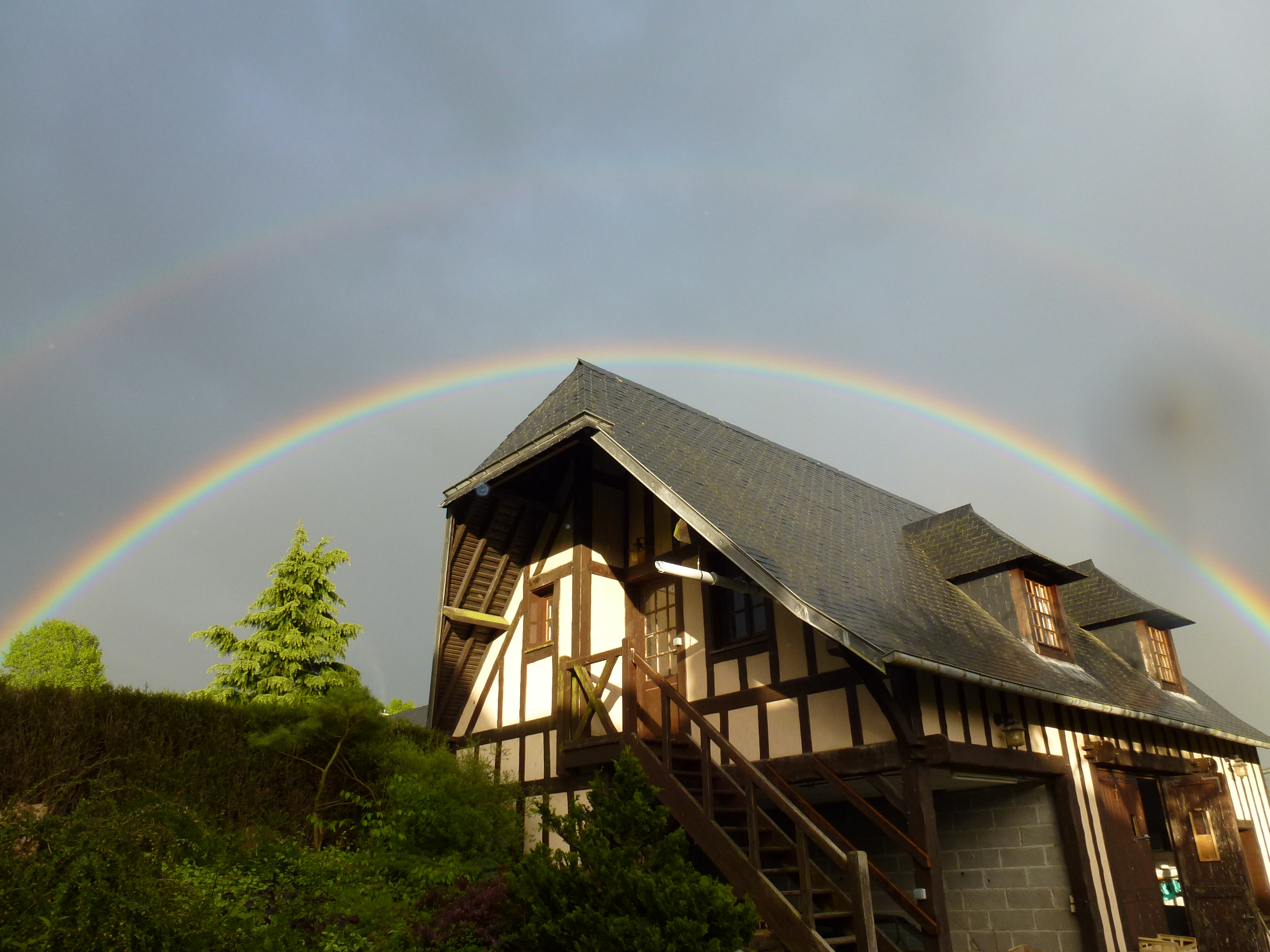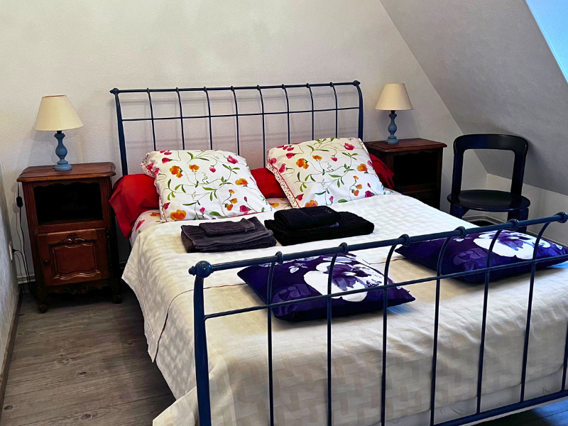 The gîte "l'Arc en ciel" welcomes you in a charming garden with a pond and ducks located near many sites to visit. Terrace on the edge of the pond with deckchairs. Sunny nature corner with garden furniture, parasol, sunbeds.