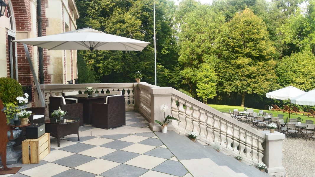 In the grounds, a 250 m² to 400 m² Prestige marquee can be erected with a convivial bar.