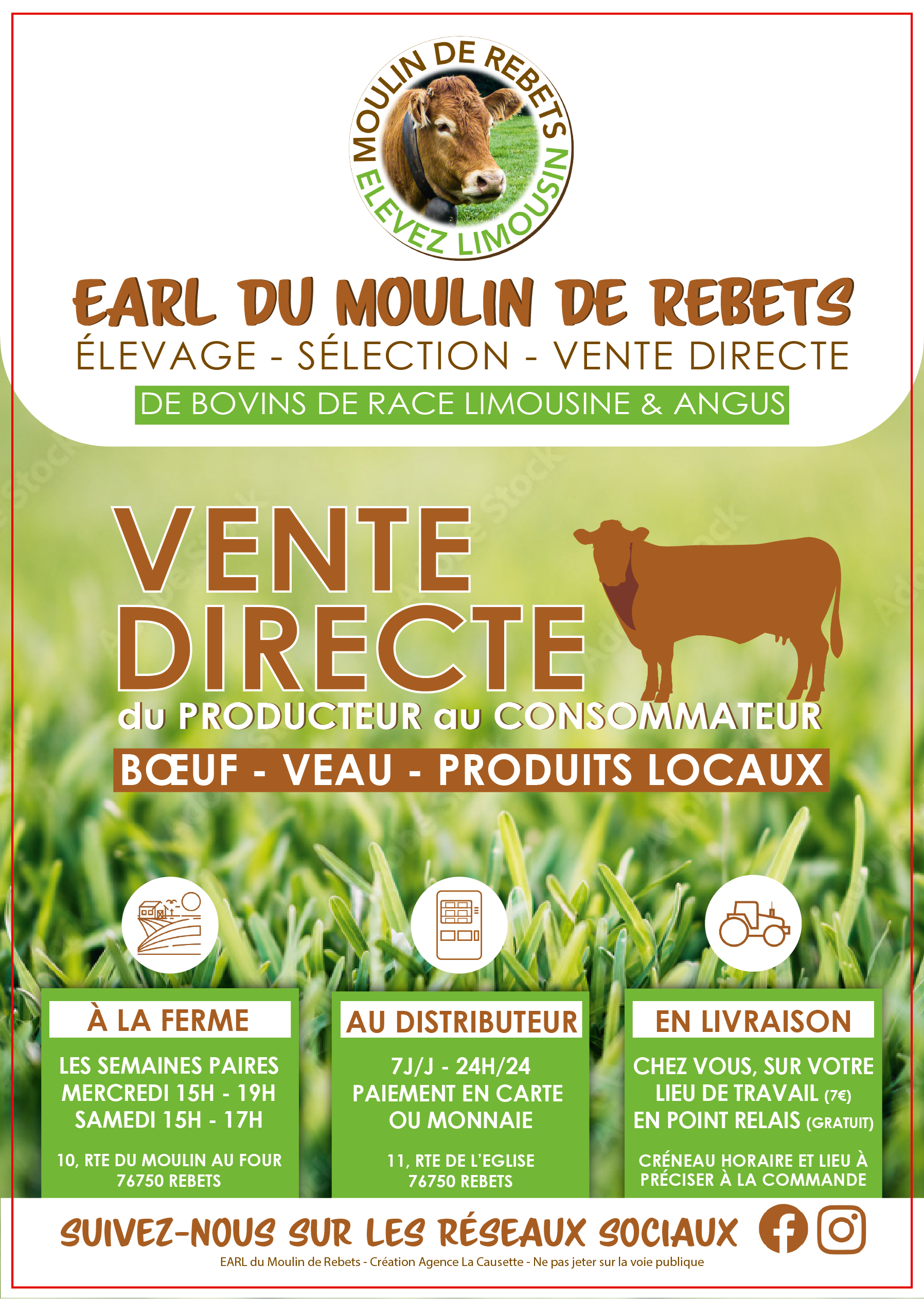 The Limousin cattle farm at Moulin de Rebets, run by Marie Bils, is located in Rebets in the Pays de Bray region of Seine-Maritime.