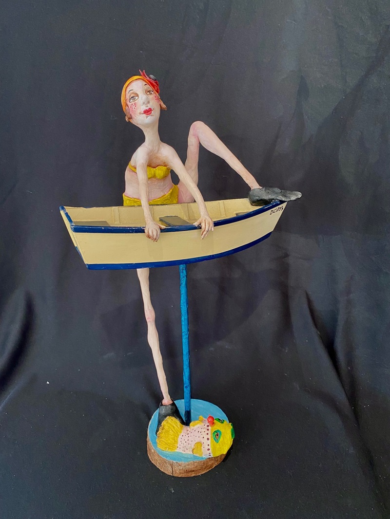 She works in sculpture using a self-hardening clay technique, and in acrylic and oil paint on linen canvas.