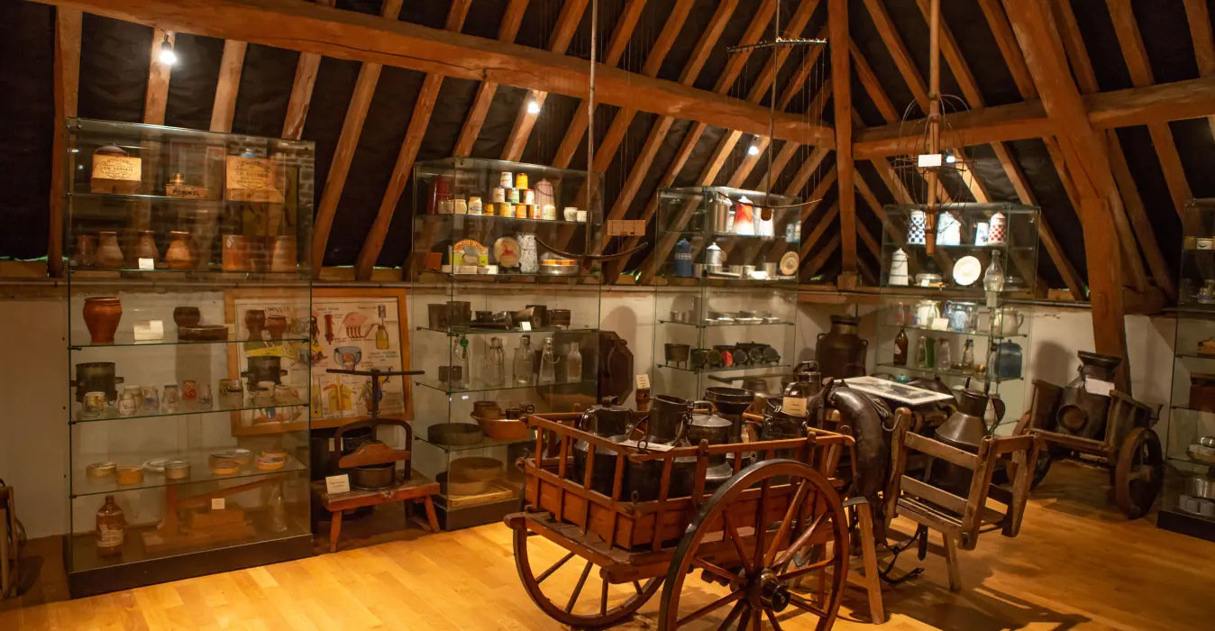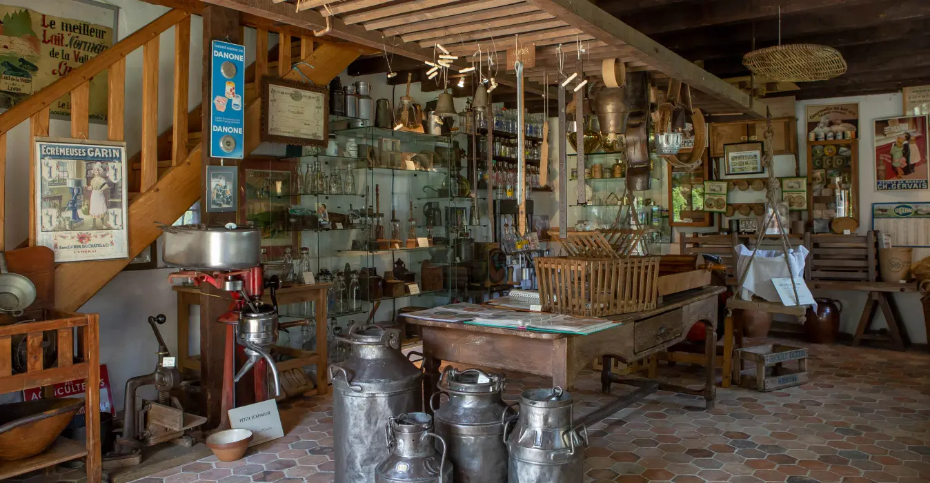 In the Vexin Normand region, fall under the charm of this museum that gives off a pleasant smell of cream and brings back childhood memories. Dedicated to milk, butter and cheese, this little museum was founded by former passionate farmers and gathers more than 2,000 objects. Yoghurt pots, glass butter churns, milk pails, Camembert labels, butter and cheese moulds, milk pots, etc., this unusual collection illustrates peasants' life in the countryside. After the visit, enjoy a snack in the garden: pancakes, madeleine cakes, cider and apple juice are all homemade. You can also buy farm produce (eggs, cider, jam, etc.).