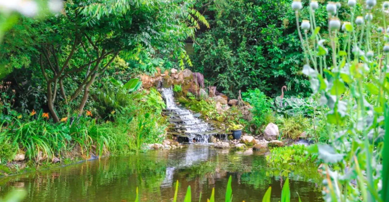 - Plusieurs plans d'eau (bassins, fontaines, rivière) et mobilier invitent à la détente