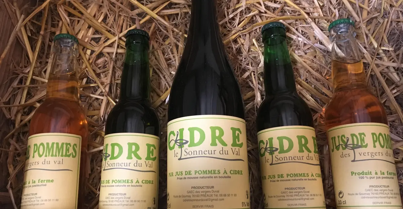 À Préaux, Antoine, Raphaël et Christine Duval vous proposent de découvrir leur cidre fermier "Le Sonneur du Val", réalisé à partir de pur jus de pommes à cidre fait traditionnellement.