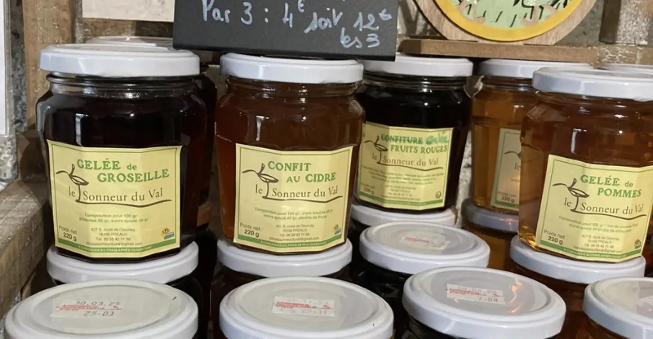 Dans la boutique vous retrouverez un assortiments de produits du terroir issus de Normandie Caux Vexin (pâtés, conserves,