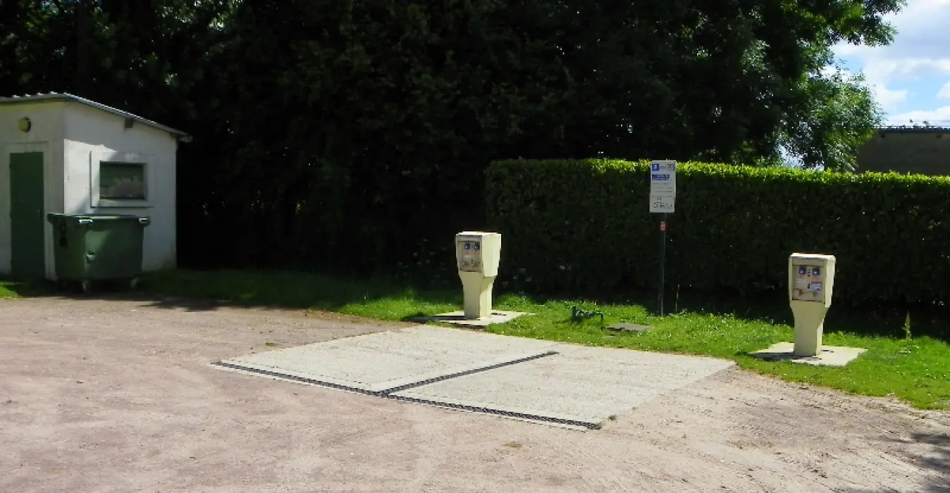 L'aire de camping-car est située à 450 m du centre ville, à côté du collège au fond du parking sur la route de Forges-les-Eaux. Elle est équipée d'une borne avec eau, vidange, électricité.
