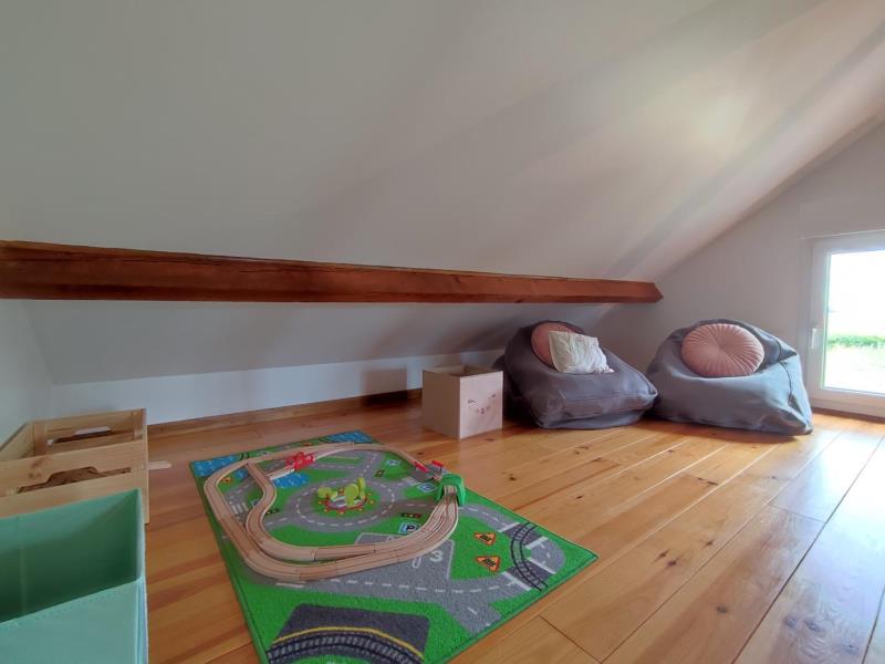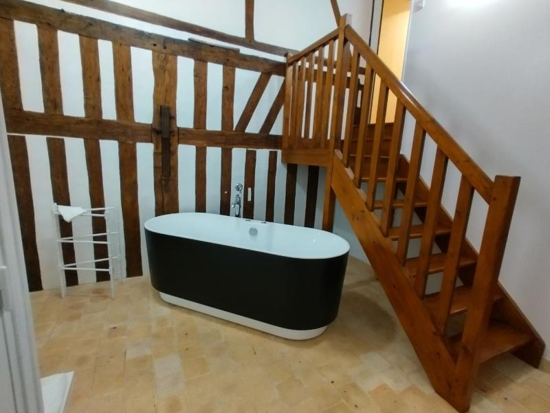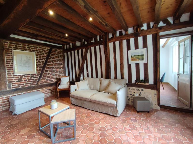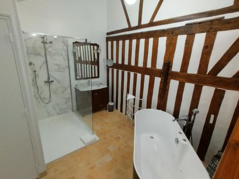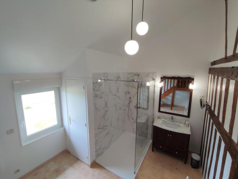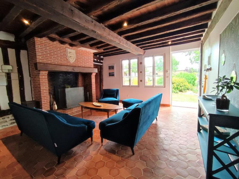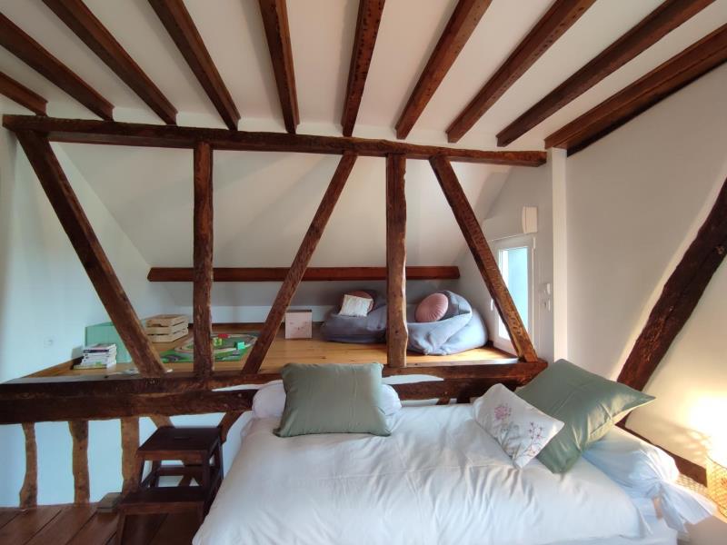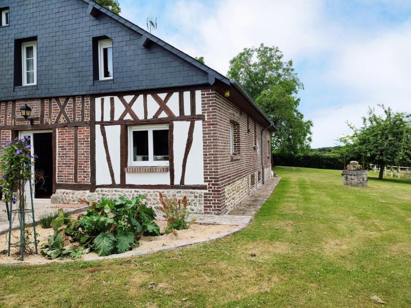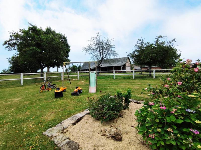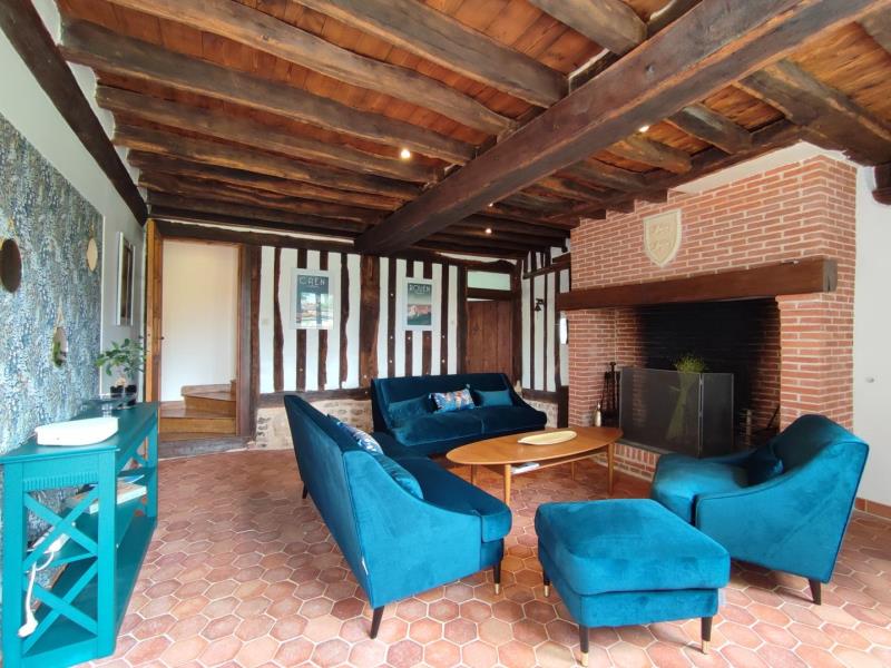 Au rez-de-chaussée : - entrée dans le salon avec belle cheminée cauchoise à l'âtre , - salon avec canapé convertible en lin (couchage de très bonne qualité), TV rétroéclairée 145cm, table de jeux transformable en bureau pour le télétravail (proximité de la boxe internet), - cuisine contemporaine ouverte (plaque induction 3 feux, lave-vaisselle, four, micro-ondes combiné, réfrigérateur/congélateur, lave-linge, robot) séparée de l'espace salle à manger par des colombages : une porte-fenêtre permet d'accéder directement à la terrasse et de profiter d'un très bel environnement, au calme. A l'étage : - wc avec lave-mains, - 1 chambre 3 lits 90x200cm avec petite mezzanine : espace jeux et lecture pour les enfants, - 1 chambre 2 lits 90x200cm, lit bébé à barreaux, - 1 chambre 1 lit 2 personnes 160x200cm, A 1/2 étage, accessible en descendant quelques marches : - salle d'eau avec grande douche à l'italienne 160x95cm, wc cloisonné, baignoire balnéo Equipement bébé à disposition.