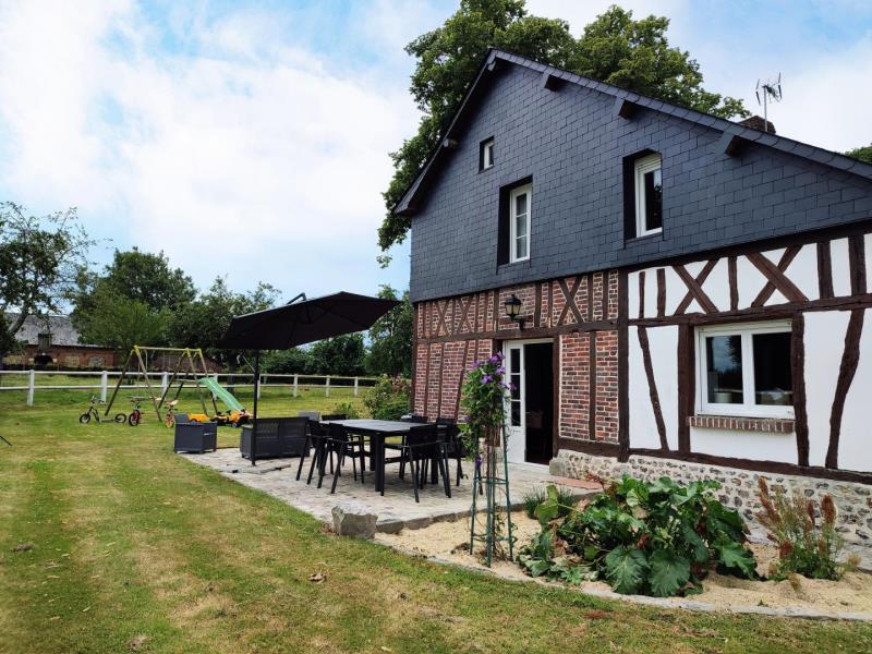 Gite indépendant aménagé dans une belle maison normande restaurée de façon éco-responsable. Vous disposez d'un vaste jardin clos (3000m²) qui jouxte une prairie occupée selon les saisons par des animaux (vaches et génisses). Il est clôturé par des poteaux de béton et fils barbelés. Le jardin dispose de jeux extérieurs pour les enfants (portique, tracteurs, vélos, trottinette). Terrasse privative avec barbecue, table et chaises, salon de jardin et transats. Visite de la ferme laitière des propriétaires dans le village sur demande : vous pourrez assister à la traite des vaches et la buvée des petits veaux. Sites de visites à proximité : Biotropica, Giverny, les écluses de Poses, les Boucles de la Seine. Borne de recharge pour véhicules électriques permettant la recharge d'une voiture en une nuit (à régler sur place)