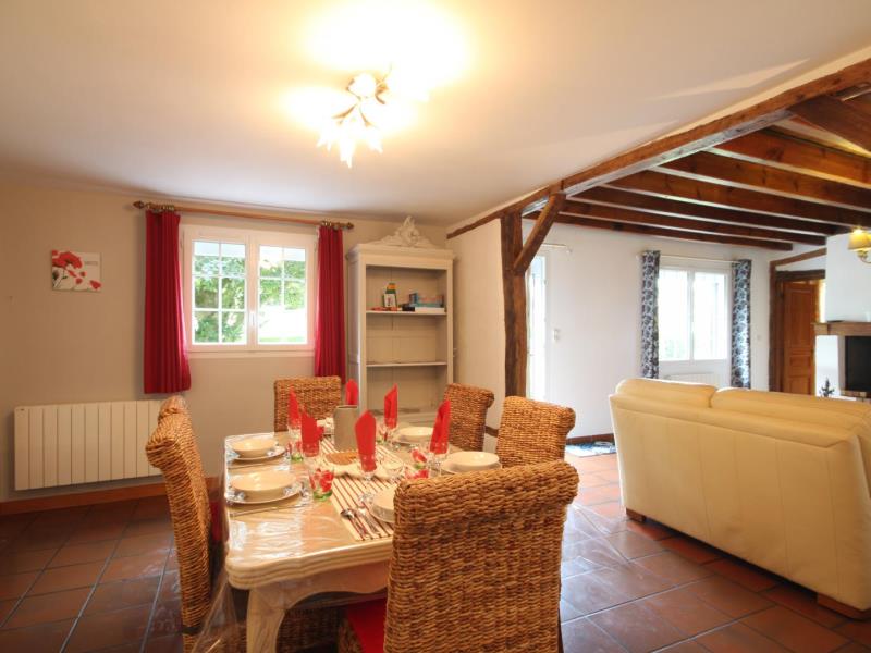 Rez-de-chaussée : - séjour/salon (Tv, lecteur DVD), cheminée avec insert à bois, - cuisine (plaque induction/gaz, four, micro-ondes, lave-vaisselle), - arrière-cuisine ( congélateur), - salle de bains (douche + baignoire balnéothérapie), - wc séparé, - buanderie (lave-linge), Étage : - 1 chambre 2 personnes (1 lit 160X200cm), - 1 chambre 2 personnes (1 lit 160X200cm), avec lit bébé accessible par couloir mansardé. - 1 chambre 2 personnes (2 lits 90X190cm). Extérieurs : - Agréable jardin arboré, salon de jardin, barbecue au charbon de bois, parking, charetterie. À noter, ce gîte n'est pas en formule tout compris : certaines options sont en supplément.