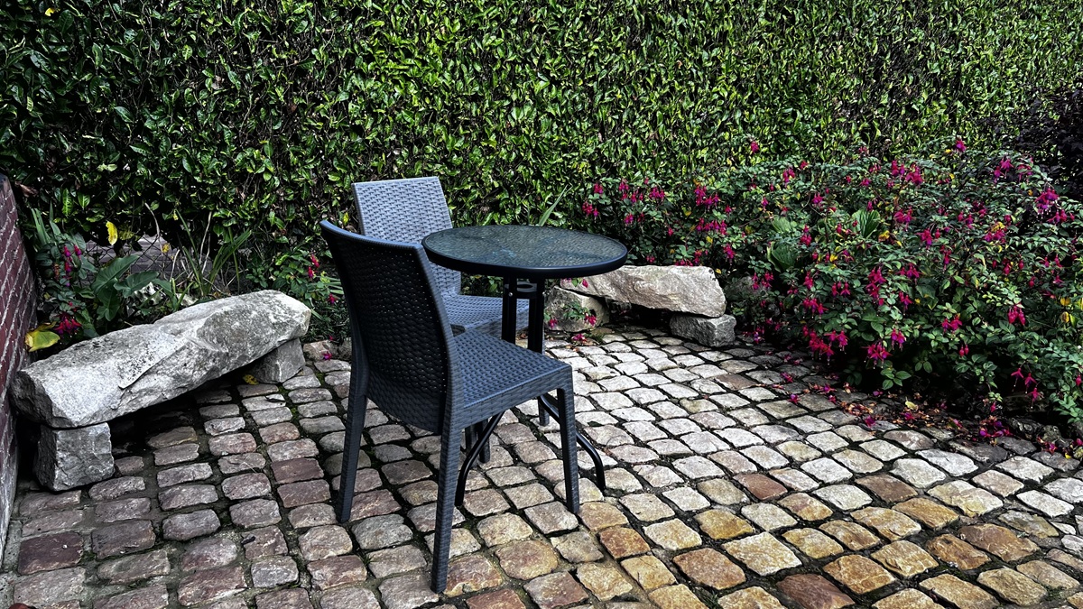 1 petite terrasse à l’avant avec petite table bistro