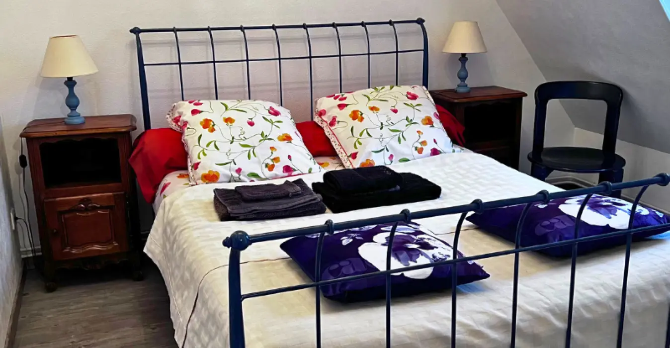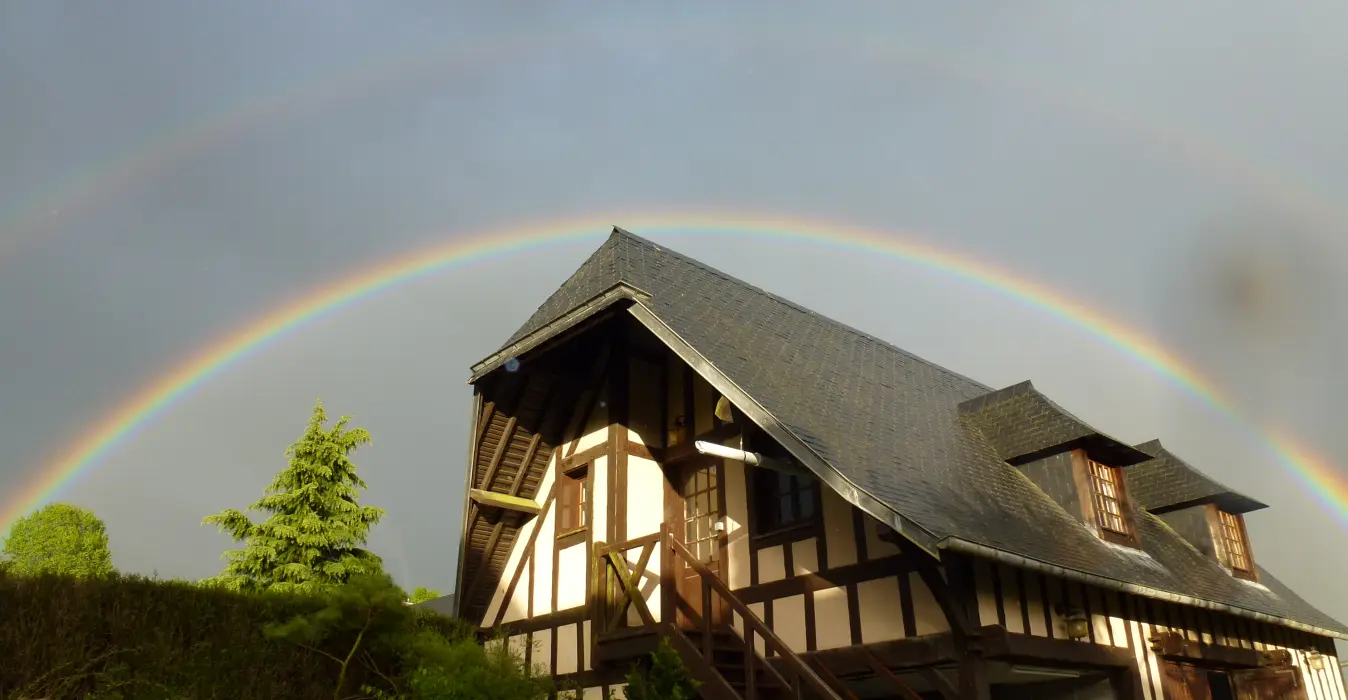 Le gîte "l'Arc en ciel" vous accueille dans un charmant jardin avec mare et canards situé à proximité de nombreux sites à visiter. Terrasse au bord de la mare avec transats. Coin nature ensoleillé avec salon de jardin, parasol, bains de soleil.