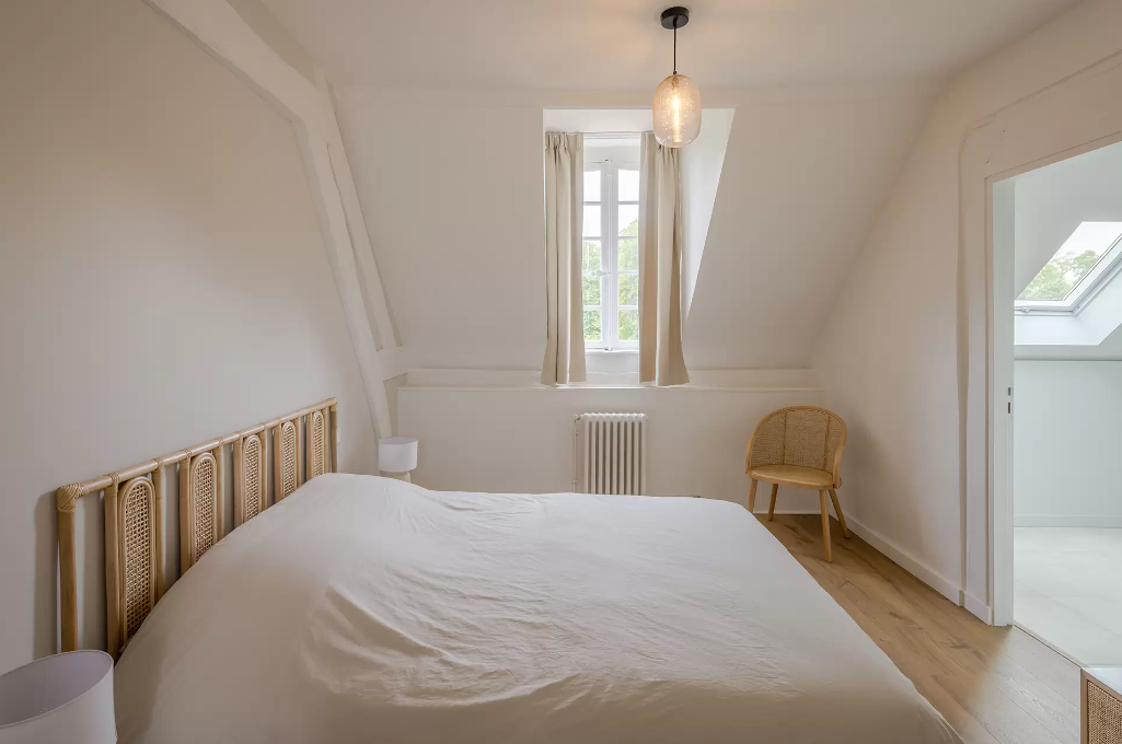 L’espace nuit à l’étage saura vous ravir pour un moment au calme avec vue sur le parc du château.