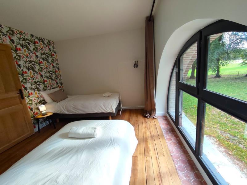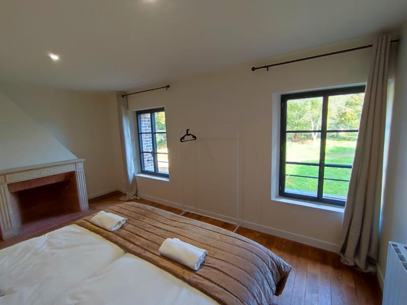 Situé dans le parc d'un château du XVII ème, dans un environnement boisé, les anciennes écuries ont été rénovées dans les règles de l'art en associant avec brio contemporain et cachet de l'ancien. Chaque chambre dispose de sa salle d'eau privative et d'une vue sur le parc du château et les chevaux à proximité. Vous apprécierez la vaste pièce de vie du rez-de-chaussée qui baigne dans la lumière idéale pour un séjour en famille, entre amis ou pour un séjour professionnel. Accès facile via les grands axes routiers à proximité. La batisse dispose de 7 chambres spacieuses dont une au rez-de-chaussée ainsi que d'une terrasse avec salon de jardin, transats et barbecue pour les beaux jours. Chauffage au sol au rez-de-chaussée et belle cheminée comtenporaine fermée (bois fourni). Grand parking privé devant le gîte.