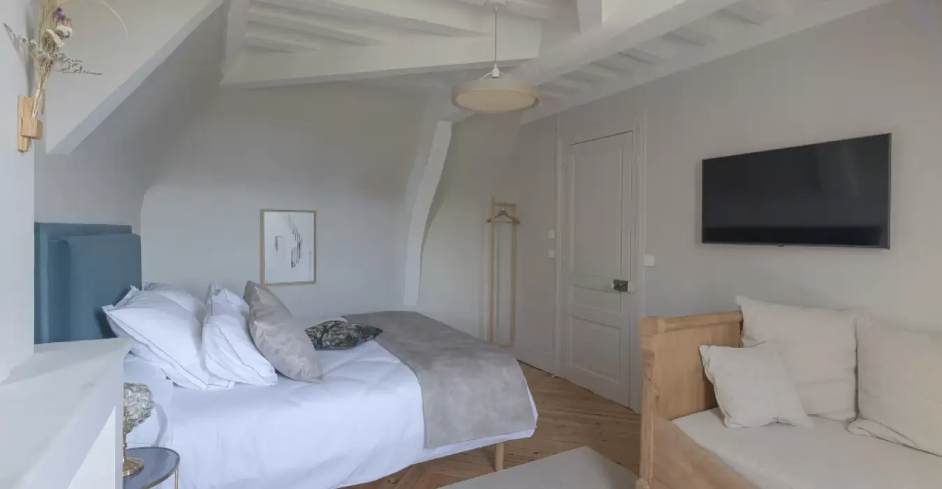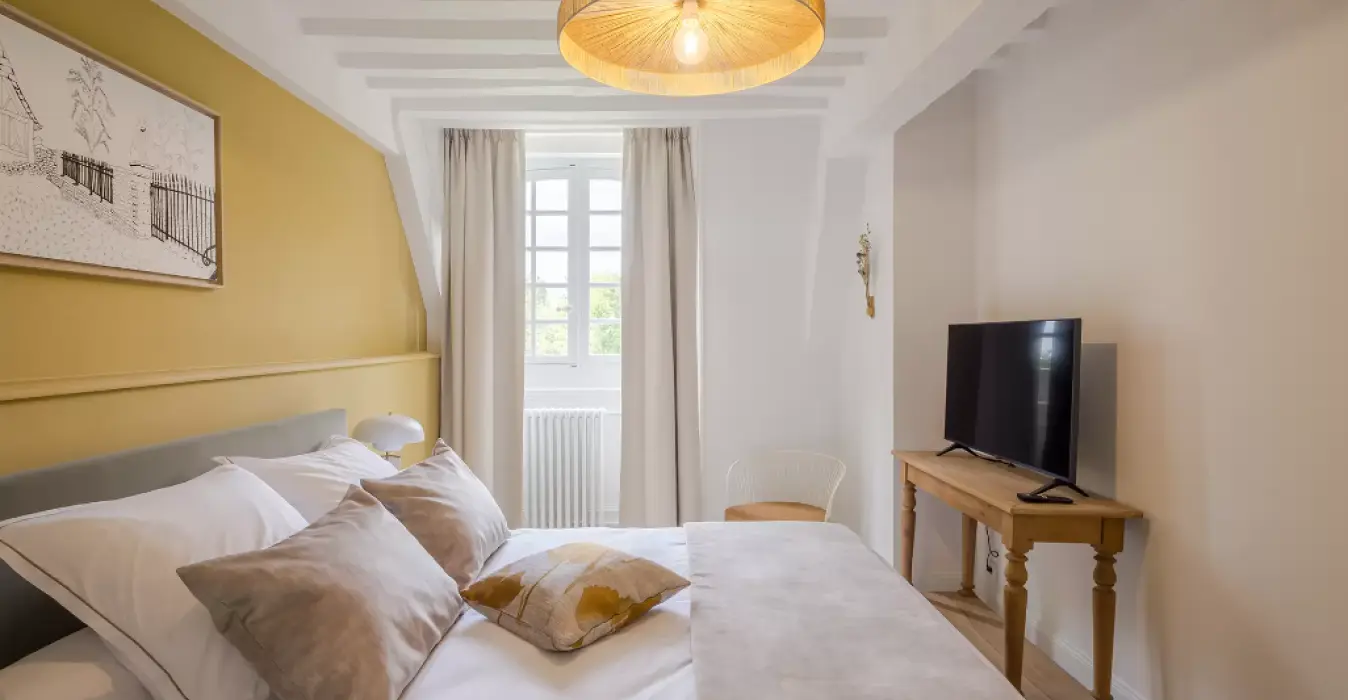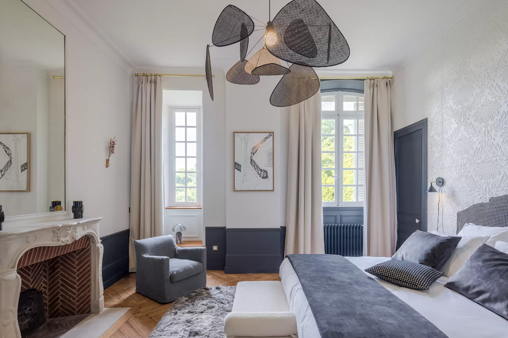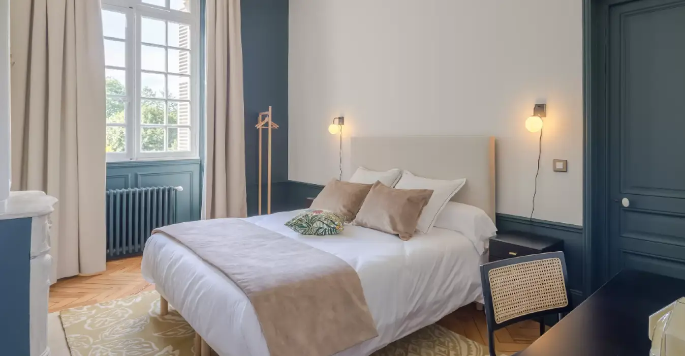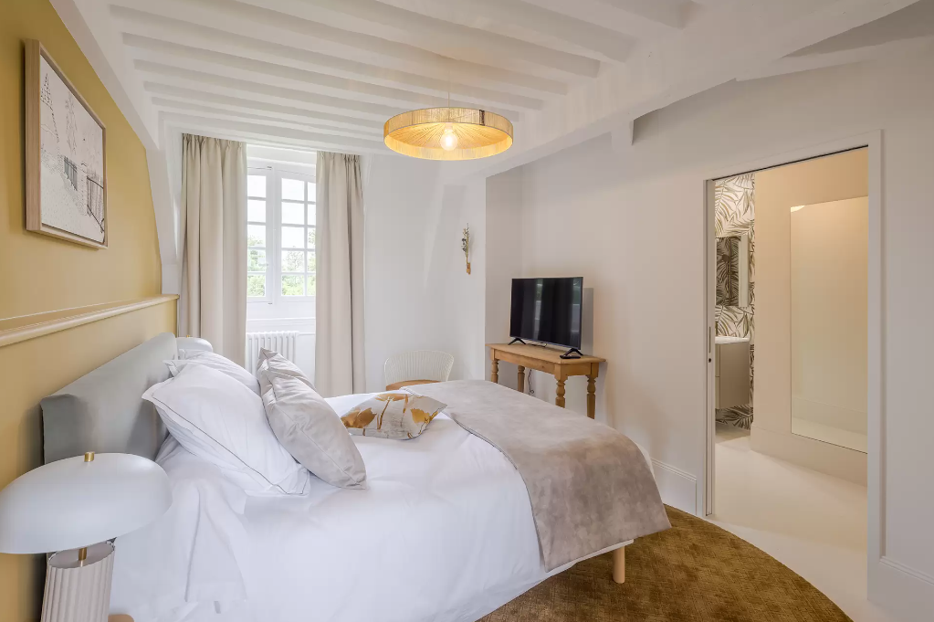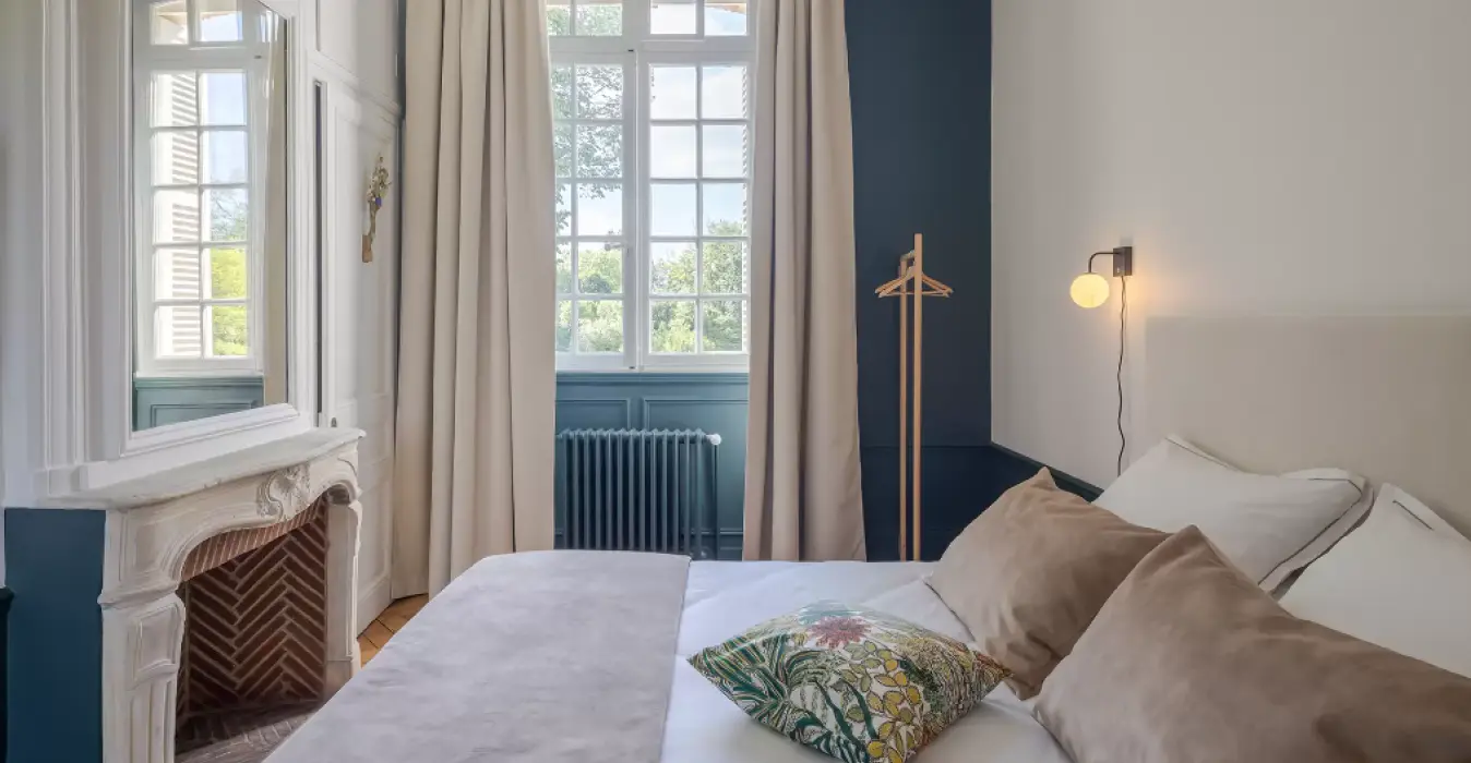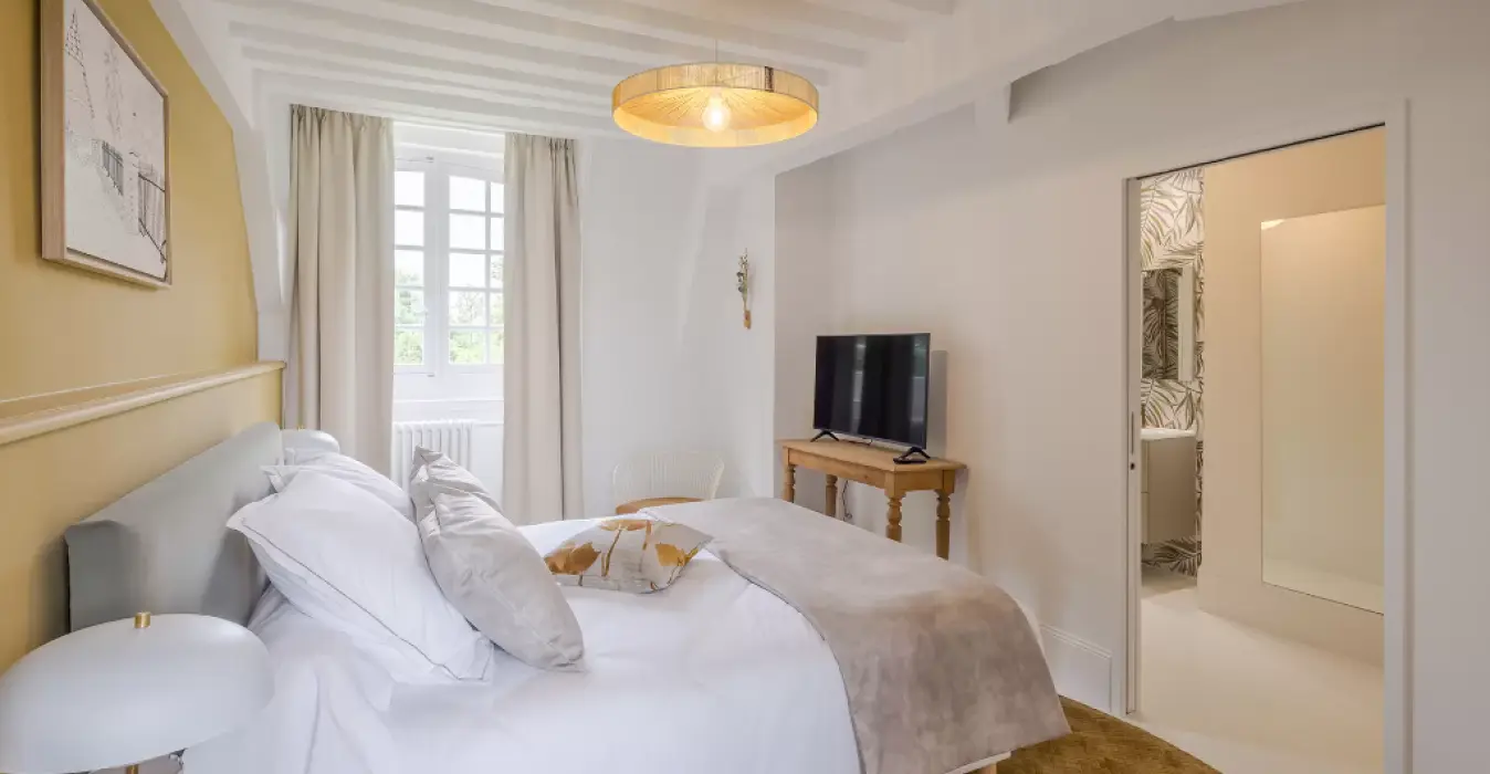 Avec une vue sur le parc du château, la suite Jeanne située au 1er étage possède une vue incroyable sur la parc du château.