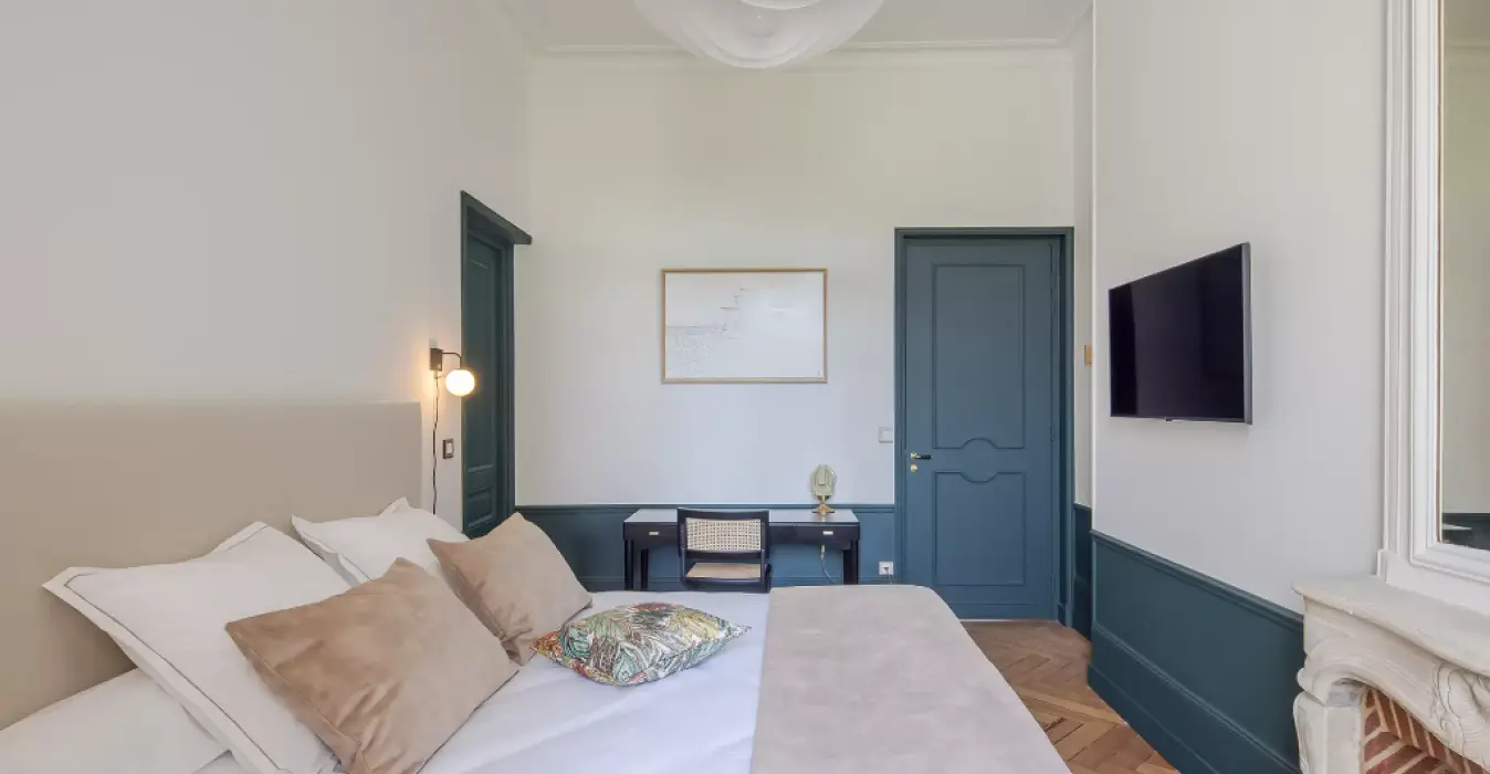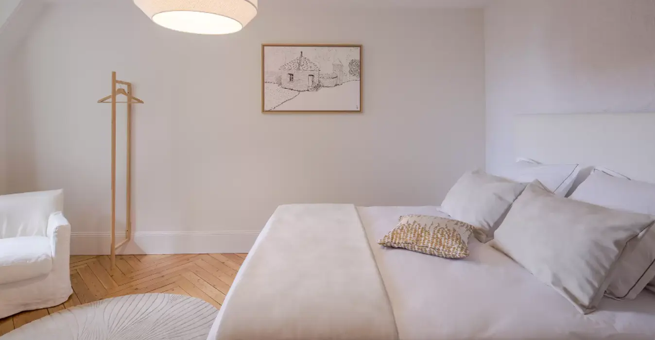 Plongez dans cet écrin de douceur aux couleurs délicates et à la décoration soignée.