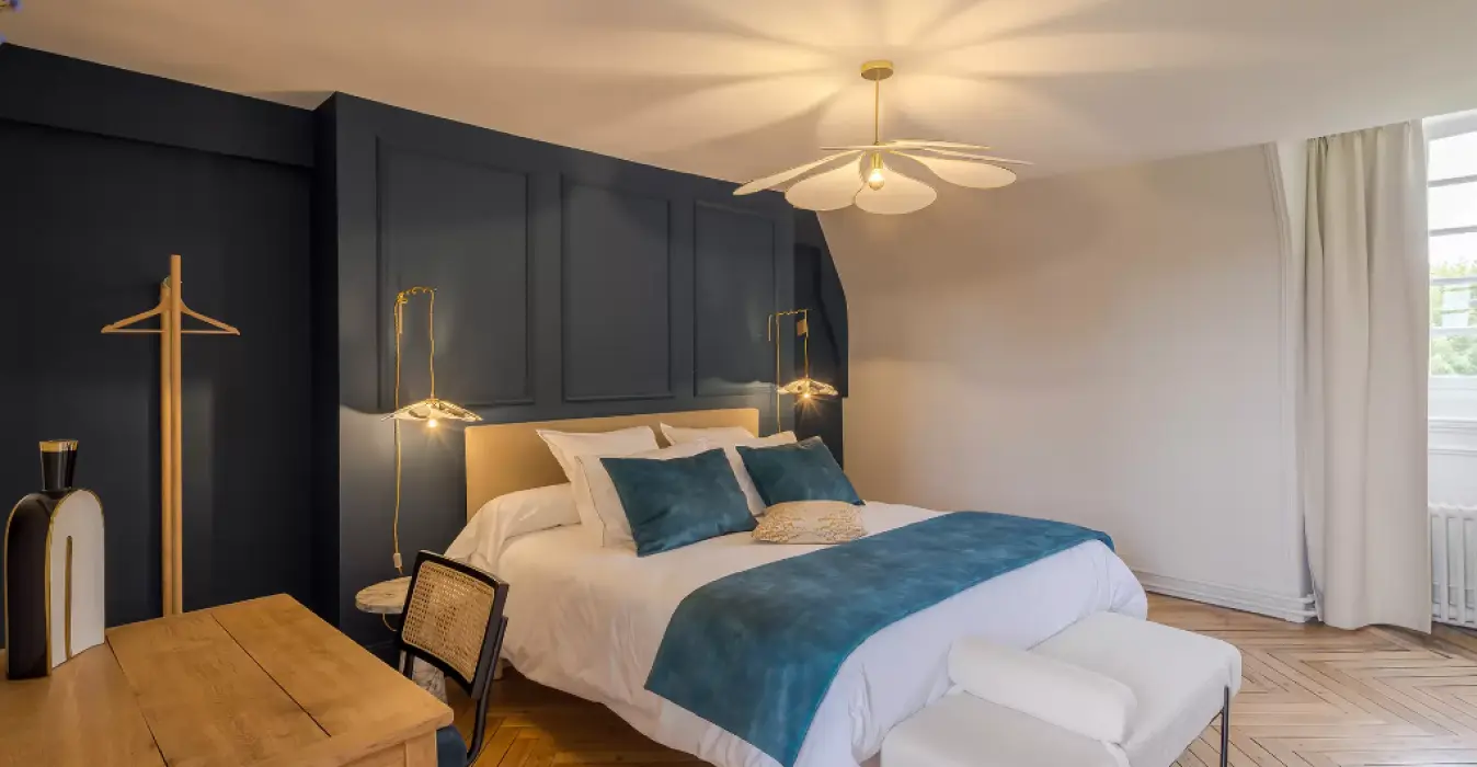 Séjournez au sein de la suite Marie dans une ambiance feutrée et boisée. Cette suite pleine de charme grâce à son parquet chevron et sa décoration soignée associe le charme de l’ancien à une décoration moderne et raffinée.