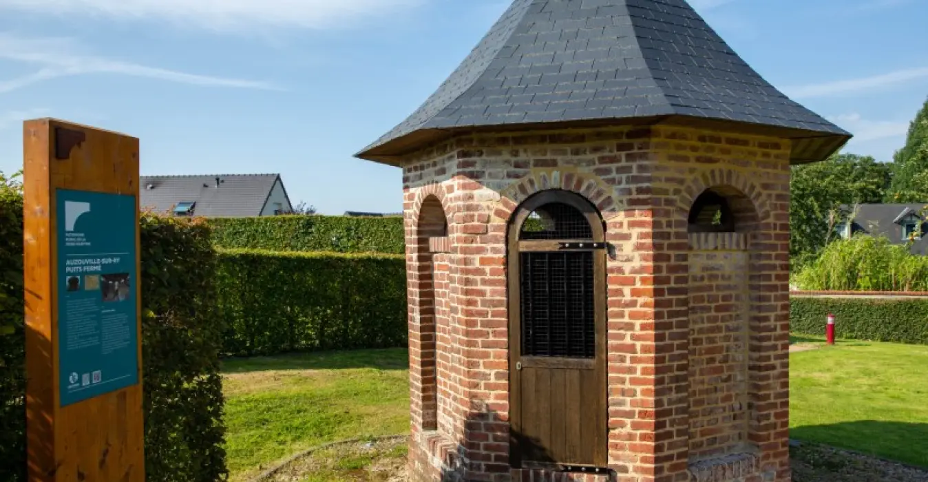 En Seine-Maritime, sur la commune d’Auzouville-sur-Ry près de Martainville-Epreville, le puits d’un ancien manoir a été restauré lors d’un chantier de bénévolat soutenu par la municipalité. Ce puits a une particularité : c’est un puits fermé, patrimoine unique pour être mentionné.